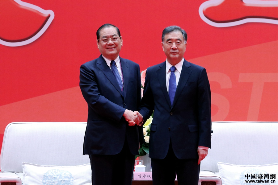 論壇開(kāi)幕前,汪洋會(huì)見(jiàn)了出席論壇的部分兩岸嘉賓和主辦單位代表。(中國(guó)臺(tái)灣網(wǎng) 尹賽楠 攝)