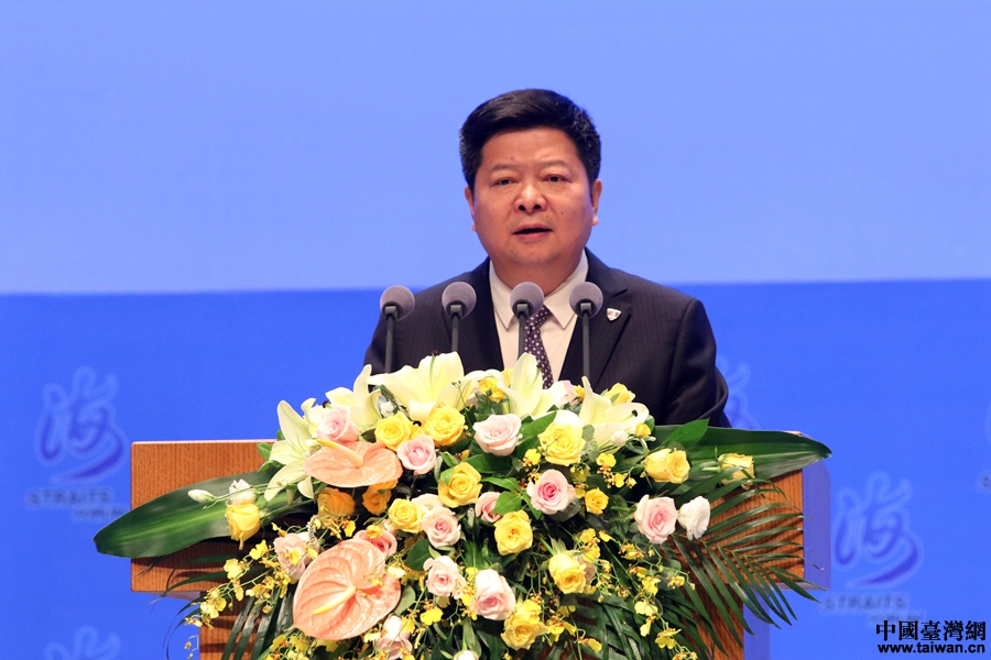 中共福建省委書(shū)記于偉國(guó)出席論壇大會(huì)并致辭。(中國(guó)臺(tái)灣網(wǎng) 尹賽楠 攝)