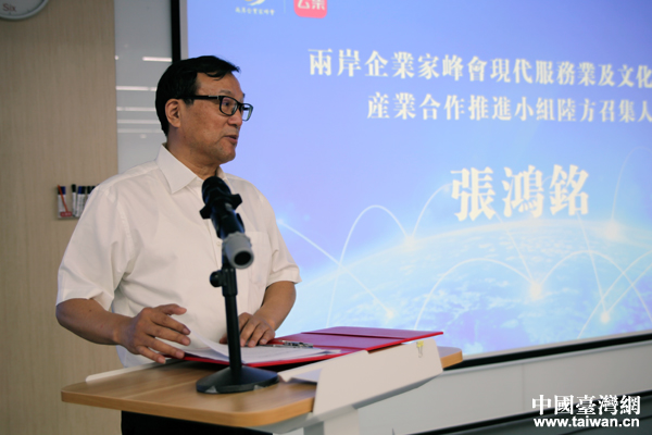 兩岸企業(yè)家峰會現(xiàn)代服務(wù)業(yè)及文創(chuàng)產(chǎn)業(yè)合作推進(jìn)小組陸方召集人張鴻銘在啟動儀式上致辭。(中國臺灣網(wǎng) 王亮 攝)