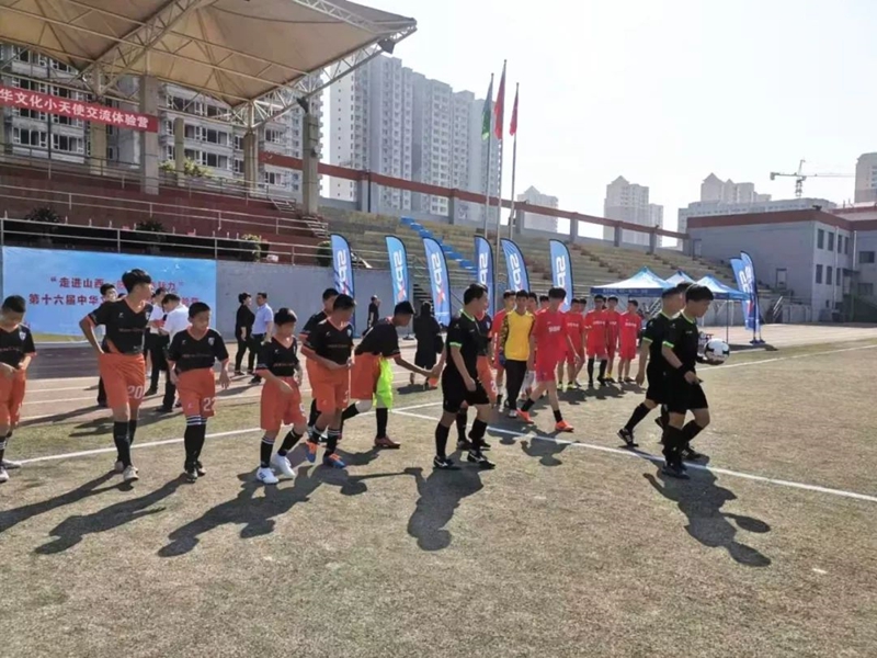 開營儀式后,九洲音像副總經(jīng)理裴超與山西省足協(xié)副主席樊衛(wèi)平一同為比賽開球。臺(tái)灣桃園市捷豹足球隊(duì)分別與汾陽中學(xué)男隊(duì)以及汾陽四中女隊(duì)展開11人制足球比賽的較量。上半場捷豹足球隊(duì)對陣汾陽中學(xué)男隊(duì),雙方水平相當(dāng),場面激烈,打成平手。在下半場與汾陽四中女隊(duì)的對決中,捷豹足球隊(duì)獲得勝利。比賽結(jié)束后,兩岸小球員意猶未盡,決定加賽30分鐘,充分利用這次寶貴的交流機(jī)會(huì)互相切磋,共同進(jìn)步。值得一提的是,捷豹足球隊(duì)兩名年齡僅十一歲的小球員,因?yàn)榫康募夹g(shù)和拼搏的精神吸引了許多現(xiàn)場球迷成為他們的“粉絲”,賽后紛紛前來合影留念。