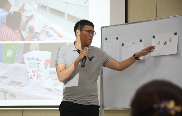 行動派環(huán)節(jié),豐臺區(qū)新聯(lián)會會長侯偉、豐臺區(qū)孵化器聯(lián)盟理事長張可朋、黑鉆石(北京)文化傳媒公司副總經(jīng)理石睿婷以及高雄青年參訪團團長、創(chuàng)扶航空站站長蔣再益與智優(yōu)沃產(chǎn)業(yè)加速器項目負責人游才徵等分別擔任導師,帶領四組成員,以“垃圾分類及再生利用”為題,在40分鐘內(nèi)完成了社會創(chuàng)新工作坊項目創(chuàng)意設計大挑戰(zhàn)并進行了精彩的路演展示。