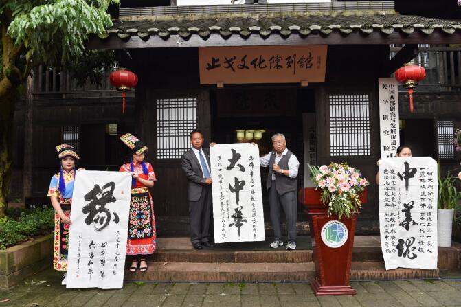 9月5日下午,出席海峽兩岸文化交流活動的嘉賓專門驅車來到眉山市洪雅縣的“尋夢花溪”止戈文化交流中心,參加止戈書院落成典禮暨海峽兩岸退役將軍“鑄劍為犁”書畫聯展與共種和平樹活動。 洪雅縣委統戰部副部長胡天貴代表洪雅縣委縣政府致歡迎詞;致公黨四川省委副主委、致公黨成都市委主委、成都市政協副主席羅霞,中國國民黨前代主席林政則,臺灣國民黨退役將領書畫家朱將軍,大陸退役將領書畫家陳華全將軍等代表兩岸退役將軍書畫家發表感言,期盼海峽兩岸早日實現和平統一。