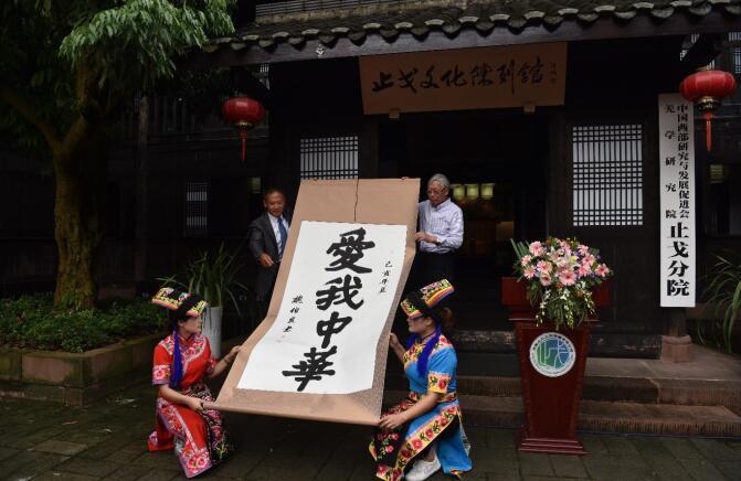 兩岸退役將軍還分別向止戈書院贈送了以“鑄劍為犁”為主題的書畫藝術作品。在熱烈歡慶的鞭炮聲中,致公黨四川省委羅霞副主委、臺灣國民黨中央前代主席、副主席林政則、張慶成先生、魏伯良將軍、朱將軍、白朝平先生和洪雅本土歷史文化專家王仿生、太極拳世界冠軍、眉山武術協會秘書長徐國偉共同為“止戈書院”匾額揭幕。據悉,2017年12月8日,受臺灣中華民族團結協會邀請,由張自忠將軍、謝晉元將軍等著名抗戰犧牲將領后人組成的止戈文化交流團赴臺參加了全面抗戰80周年紀念音樂會,臺灣前國民黨主席洪秀柱親自為止戈書院題寫了匾額,寄希兩岸同胞能發揚老祖宗“化干戈為玉帛” 的止戈精神,攜手并進,共同努力,兩岸能早日和平統一。