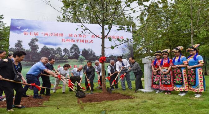 最后,與會嘉賓和兩岸退役將軍書畫家一起來到花溪河畔大關山下的和平林,共同種下了期盼海峽兩岸早日和平統一的鴿子花樹,并在樹下集體合影留念。