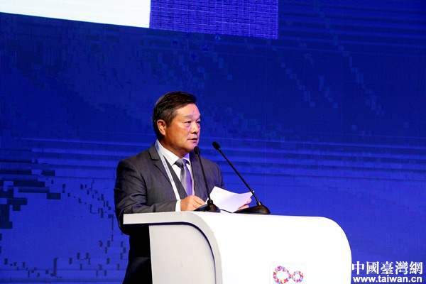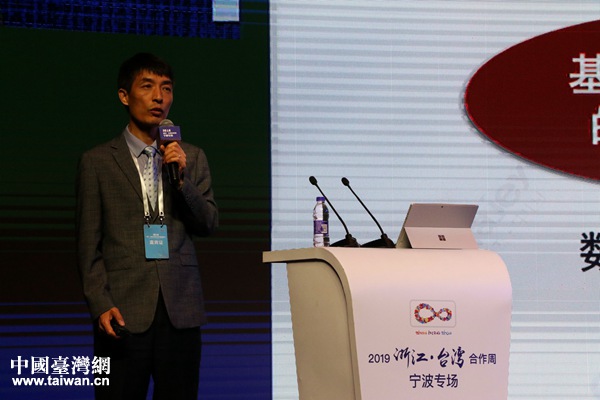 浙江中之杰智能系統(tǒng)有限公司創(chuàng)始人、總裁、寧波騰訊云產(chǎn)業(yè)基地董事長(zhǎng)蘇玉學(xué)作主題演講。(中國臺(tái)灣網(wǎng) 李杰 攝)