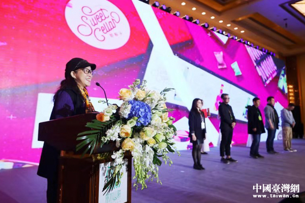 臺灣形象策略聯盟執行主席林采霖發表對獲獎作品的評價。她是2018中國改革開放40年設計人特殊功勛獎獲得者。(中國臺灣網發)