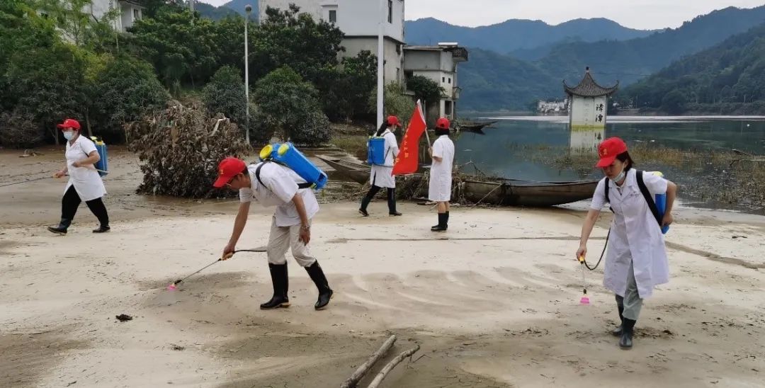 黃山支部主委張光是歙縣深渡醫(yī)院的骨科醫(yī)生,他看到洪水退去后當(dāng)?shù)胤酪叻啦⌒蝿輫?yán)峻。在調(diào)研了解需求后,張光立即組織黃山支部盟員聯(lián)合歙縣第二人民醫(yī)院開展災(zāi)后防疫防病工作,深入歙縣深渡鎮(zhèn)漳潭村進(jìn)行災(zāi)后現(xiàn)場防疫消殺,并給當(dāng)?shù)匕傩掌占敖】捣酪咧R。臺盟安徽省總支副主委、秘書長王宇靖,副主委江良了解情況后乘火車趕來參加活動。
