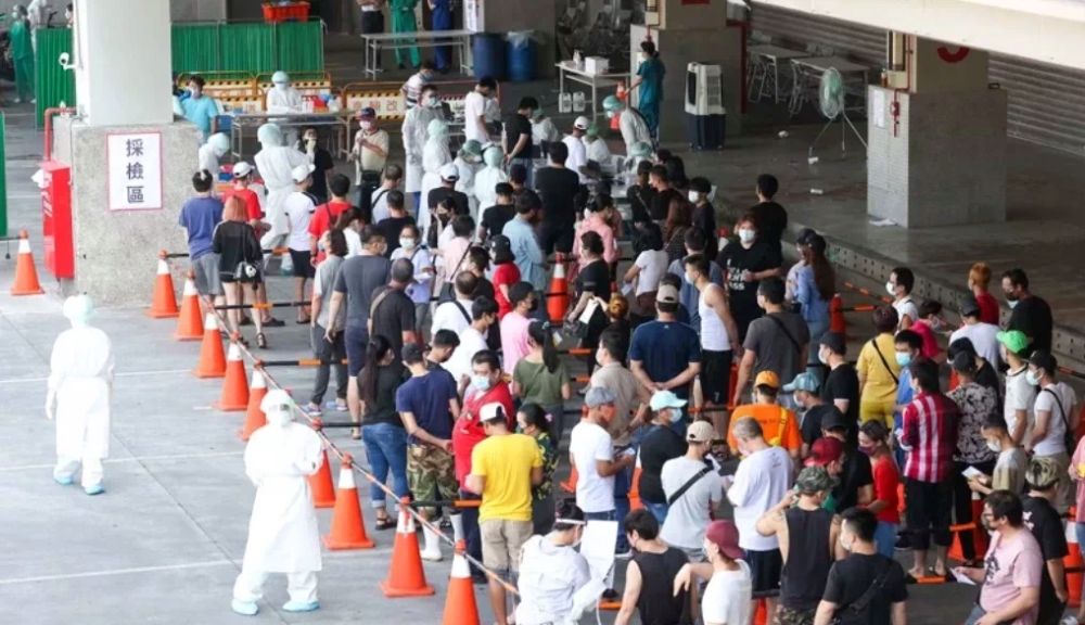 臺灣民眾大排長龍進行篩檢。圖片源自臺灣中時電子網