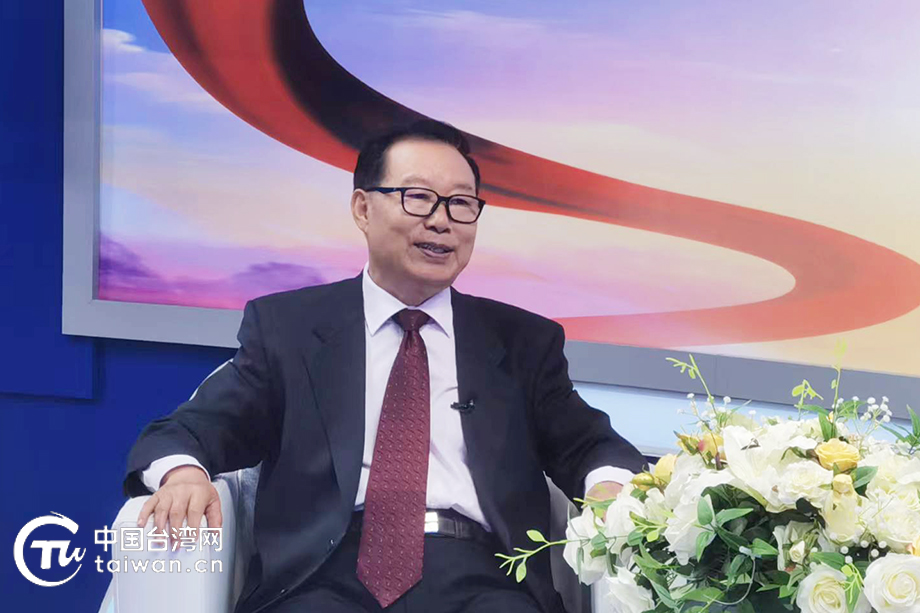 前海峽兩岸關系協會副會長、全國臺灣研究會副會長王在希接受中國臺灣網記者采訪。(中國臺灣網 李丹 攝)