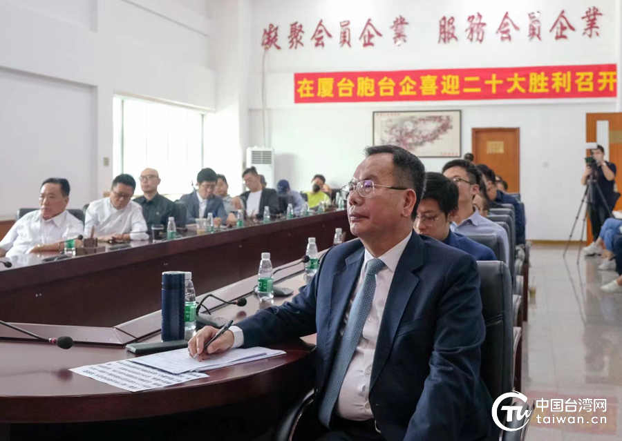 廈門臺胞、臺企觀看黨的二十大開幕會。(中國臺灣網發)