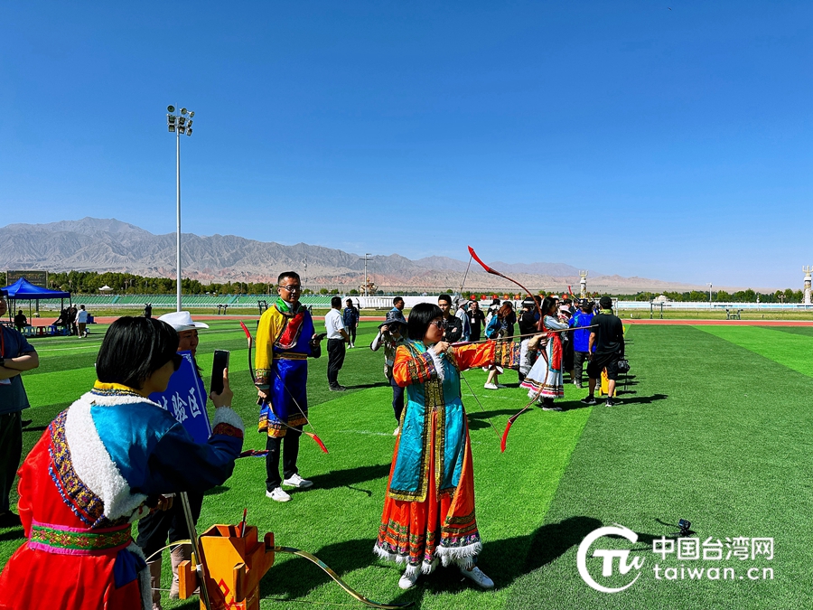 “絲路風采 如意甘肅”海峽兩岸記者聯合采訪團來到肅北蒙古族自治縣,體驗蒙古族“男兒三藝”。(中國臺灣網 李柏濤 攝)