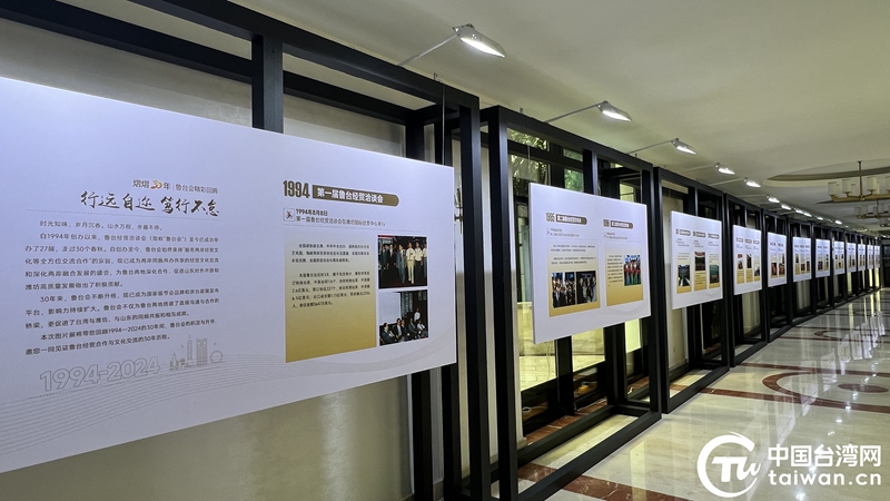 “熠熠30年”魯臺會精彩回眸展集中展示了自首屆舉辦以來的大量珍貴資料圖片。(中國臺灣網記者 孫路路 攝)