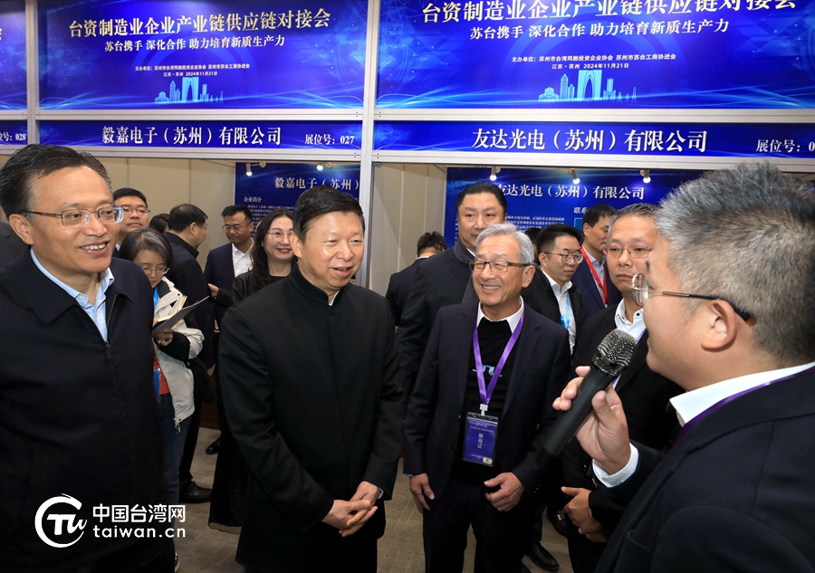 中共中央臺(tái)辦、國務(wù)院臺(tái)辦主任宋濤走訪臺(tái)資制造業(yè)企業(yè)產(chǎn)業(yè)鏈供應(yīng)鏈對接會(huì)展位,向參展企業(yè)代表了解產(chǎn)品特性、市場需求和發(fā)展情況,鼓勵(lì)臺(tái)商臺(tái)企把握中國式現(xiàn)代化全面推進(jìn)機(jī)遇,在大陸發(fā)展得更好更快。參展臺(tái)企代表紛紛表示,搭建產(chǎn)業(yè)鏈供應(yīng)鏈對接平臺(tái),讓供需兩端面對面交流,企業(yè)從中切實(shí)受益,進(jìn)一步堅(jiān)定了扎根大陸發(fā)展的信心。