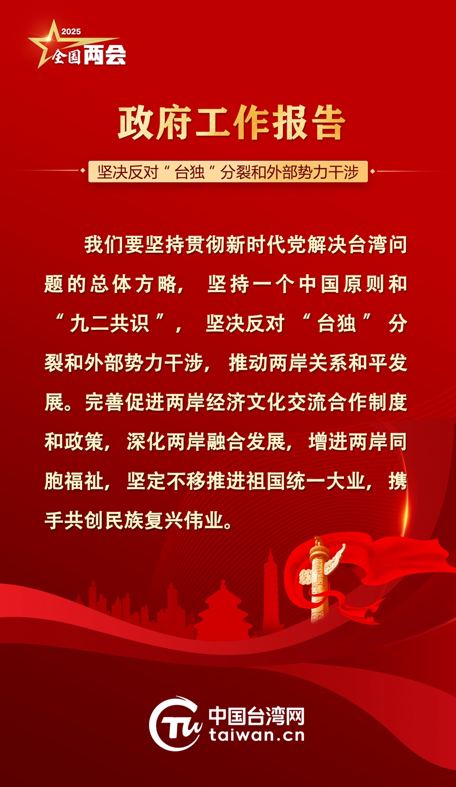 圖解|政府工作報告:堅決反對“臺獨”分裂和外部勢力干涉