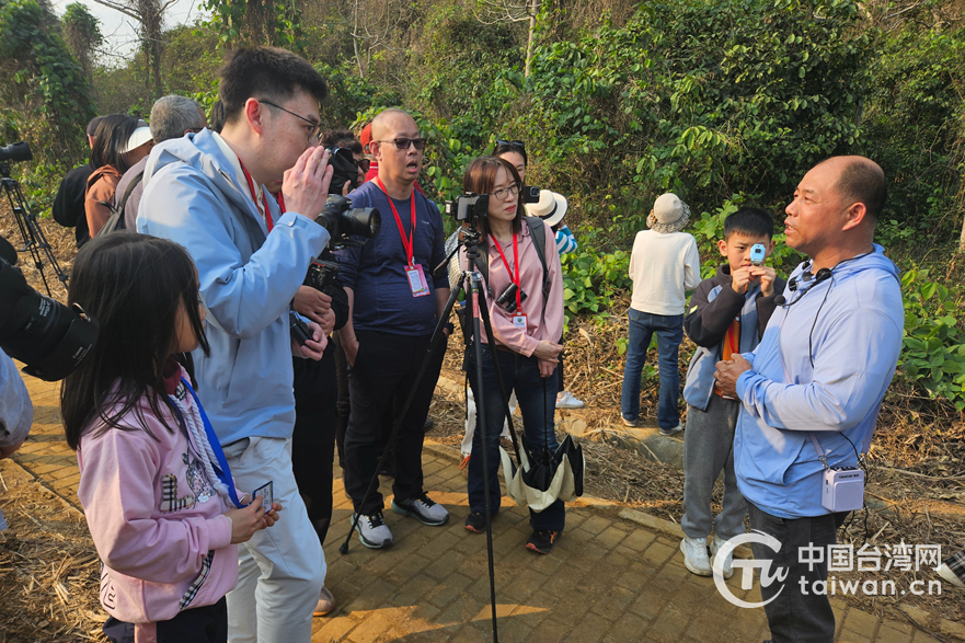 兩岸媒體記者在白頭葉猴國家級(jí)自然保護(hù)區(qū)采訪。(中國臺(tái)灣網(wǎng)記者 李寧 攝)