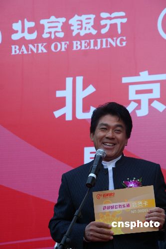 北京銀行財富中心旗艦店十月十八日在北京金融街開業,旗下“超越財富”俱樂部也正式成立。演員朱時茂成為“超越財富”俱樂部首位會員,獲贈編號為“00001”的會員卡。 中新社發 魏晞 攝