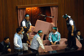 12月7日民進黨“立委”堆椅子堵門 |