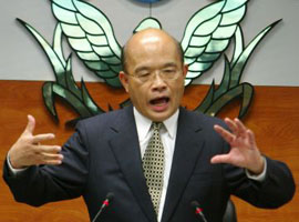 第五任“行政院長”是喜歡拿自己的禿頭自嘲的蘇貞昌。上任初期他小心謹慎,很少對外發言。隨著陳水扁家族弊案纏身,蘇貞昌為2008年選舉考慮,開始逐漸與之劃清界限,主張在兩岸經貿政策上走較為務實、開放的“蘇修路線”,同時在倒扁高漲之際提出辭職,結果與陳水扁種下難以化解的心結。中華銀行擠兌風暴出現后,陳水扁終于找到復仇機會,修理蘇貞昌毫不手軟。 |
