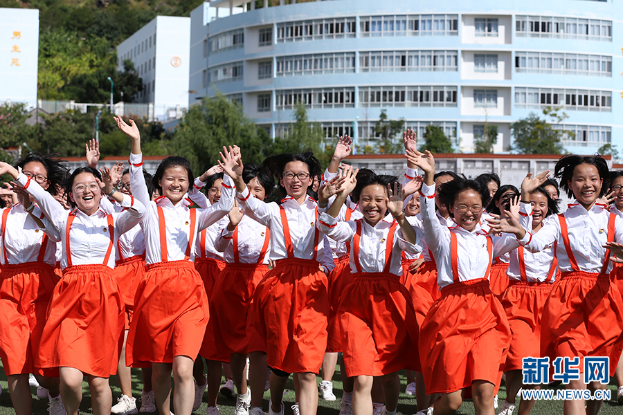 學(xué)生們面對(duì)鏡頭歡快地招手(2019年10月17日攝)。新華網(wǎng) 趙普凡 攝