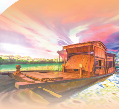 浙江嘉興南湖革命紀念館內的紅船模型。