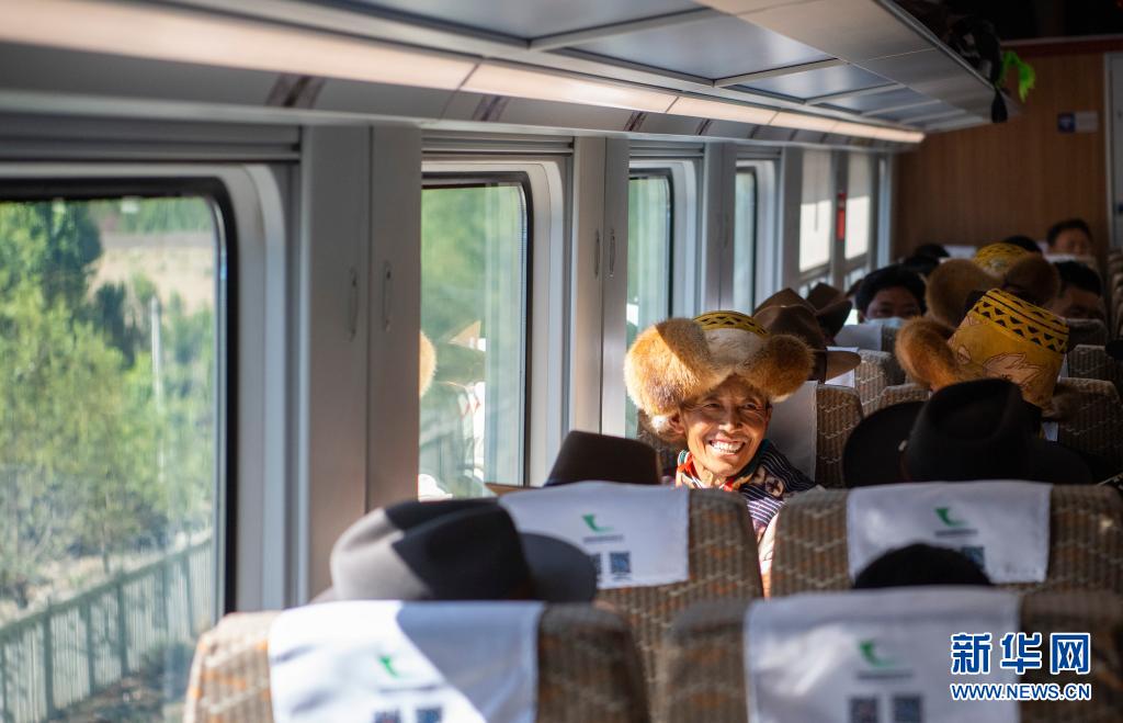 來自山南市貢嘎縣杰德秀鎮杰德秀村的巴珠,今年68歲,他一會兒從車窗眼望高山峽谷,一會兒摸摸車內現代化設施,這是他頭一次坐火車。“復興號和牛車比起來,像是在飛翔!彼χf。