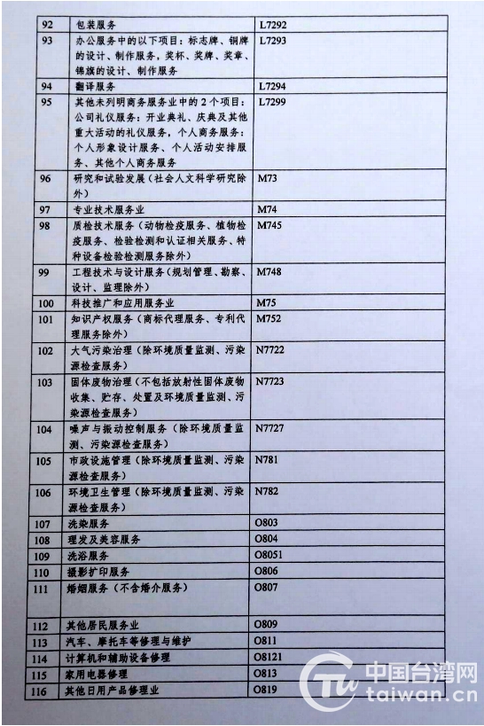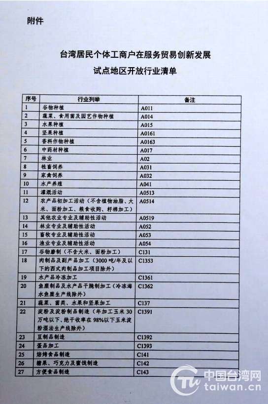 附件:臺灣居民個體工商戶在服務貿易創新發展試點地區開放行業清單