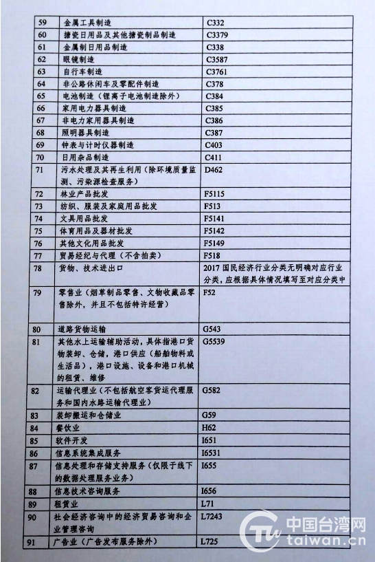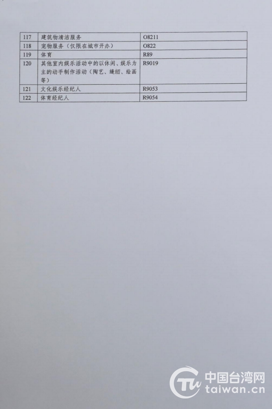 二、臺灣居民申請設立個體工商戶的經營范圍為谷物種植等122項(詳見開放行業清單),經營范圍涉及行政審批的,依照相關規定辦理。
