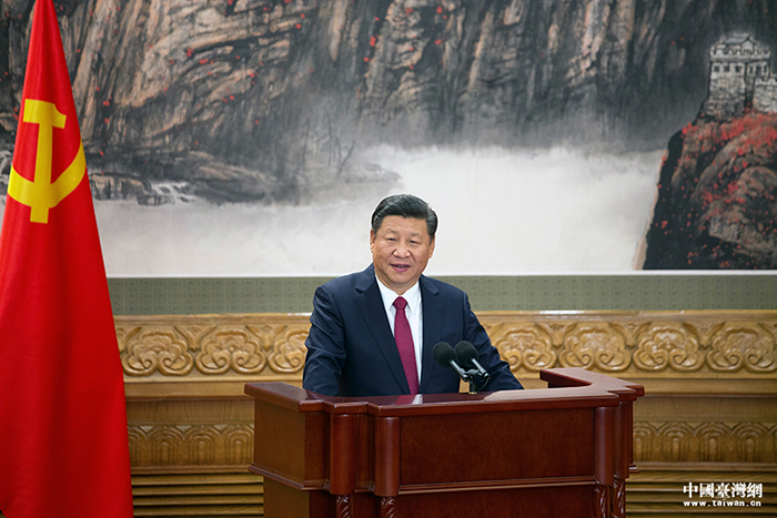 黨的十九屆中央委員會第一次全體會議新選出的中央政治局常委同中外記者見面,習近平總書記發表重要講話。