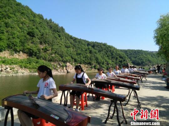 中新網南陽5月29日電 (王秋蘭)“路漫漫其修遠兮,吾將上下而求索。飲余馬于咸池兮,總余轡乎扶!薄峨x騷》作為屈原的代表作,被人們千古傳誦。28日,千余名游客匯聚在位于河南南陽西峽縣內風景秀美的石門湖,以誦讀《離騷》、觀看演漢代舞蹈《驚鴻舞》的形式共同緬懷偉大的先賢屈原,傳承端午節民俗文化。