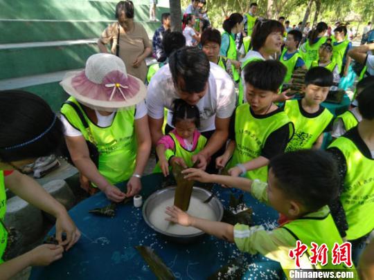 與此同時,包粽子比賽也在激情上演,游人們一邊教包粽子,一邊聆聽主持人講解端午節的來歷,在快樂中感受中國傳統節日的文化內涵。