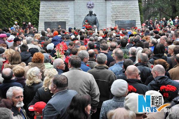 5月9日,在愛沙尼亞首都塔林,人們排隊向蘇軍解放塔林紀念碑獻花。當天,愛沙尼亞舉行各種活動,慶祝世界反法西斯戰(zhàn)爭勝利65周年。新華社發(fā)(維克托攝)