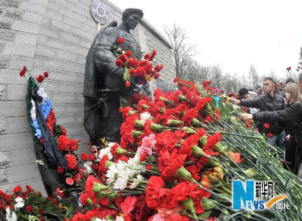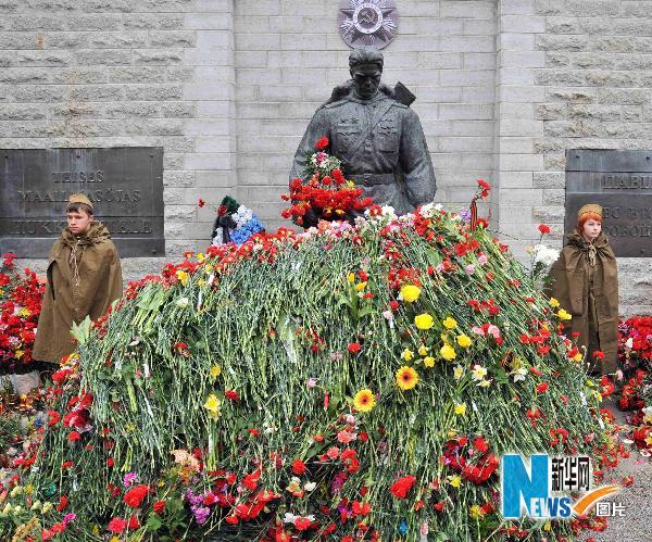 5月9日,在愛沙尼亞首都塔林,蘇軍解放塔林紀念碑前堆滿了獻花。當天,愛沙尼亞舉行各種活動,慶祝世界反法西斯戰(zhàn)爭勝利65周年。新華社發(fā)(維克托攝)