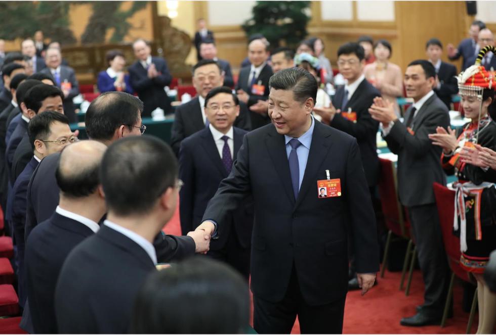 3月10日下午,中共中央總書記、國家主席、中央軍委主席習近平參加十三屆全國人大二次會議福建代表團審議。(圖片來源:央視新聞客戶端)