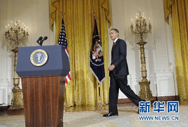 3月18日,美國總統奧巴馬準備在華盛頓白宮發表講話。奧巴馬稱,美國不會派遣地面部隊進入利比亞。但他警告說,如果利比亞領導人卡扎菲不遵守聯合國決議,美國將和其他一些國家采取軍事行動。新華社記者張軍攝