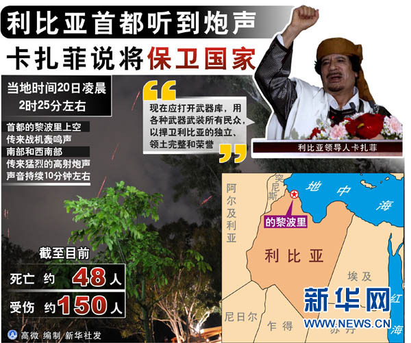 圖表:利比亞首都聽到炮聲卡扎菲說將保衛(wèi)國家