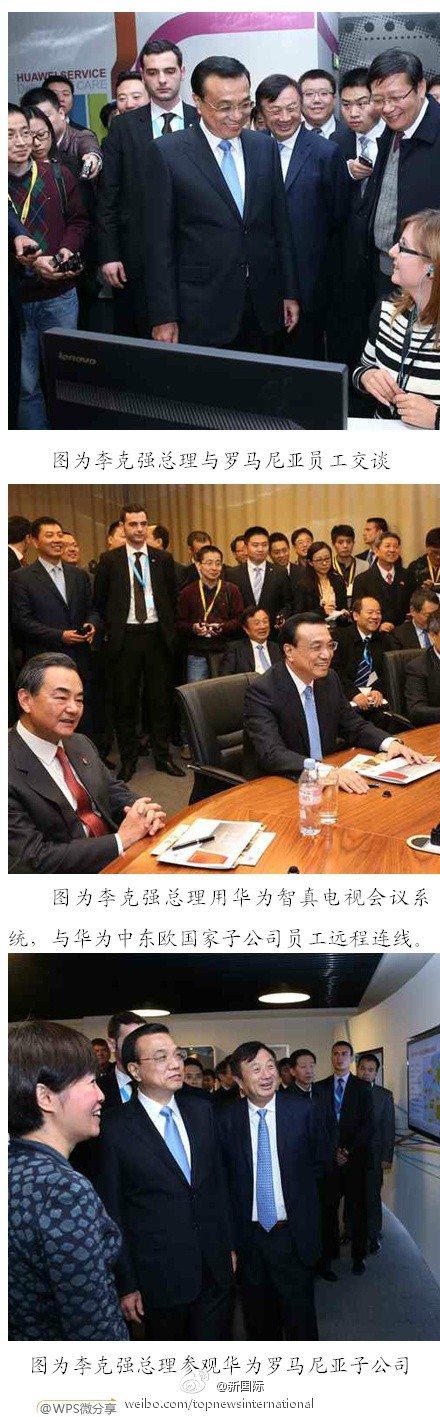 據(jù)新華社“新國(guó)際”微博報(bào)道,國(guó)務(wù)院總理李克強(qiáng)27日下午視察華為羅馬尼亞子公司。經(jīng)過10年運(yùn)營(yíng),華為目前在羅電信綜合市場(chǎng)占有率排名第一。華為羅馬尼亞子公司百分之七十是當(dāng)?shù)貑T工,為當(dāng)?shù)貏?chuàng)造了大量就業(yè)崗位,是中歐互利共贏的寫照。