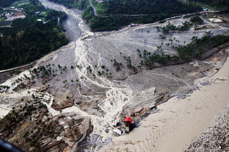 高雄縣那瑪夏鄉(xiāng)民族村在“莫拉克”風(fēng)災(zāi)中受創(chuàng)嚴(yán)重,一名村民看著被洪水與泥石流沖壞的房子,滿目凄涼。圖片來源:臺灣《聯(lián)合報(bào)》