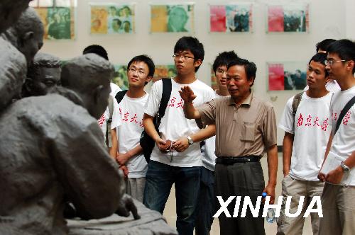 7月17日,南京大學(xué)工程管理學(xué)院的師生在與大包干帶頭人之一嚴(yán)宏昌(前右三)交流。今年正值改革開放三十年,大包干發(fā)源地——安徽省鳳陽縣小崗村成為大學(xué)生暑期社會(huì)實(shí)踐的熱土。全國(guó)許多高校師生來到小崗村,走訪大包干帶頭人,考察小崗村三十年來的發(fā)展變化,增加對(duì)改革開放三十年的認(rèn)識(shí)。新華社記者 李健 攝