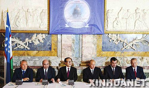 ● 2001年6月14日,“上海五國”元首在上海舉行第6次會晤,烏茲別克斯坦以完全平等的身份加入“上海五國”。15日,6國元首舉行了首次會晤,并簽署了《上海合作組織成立宣言》,宣告上海合作組織正式成立。