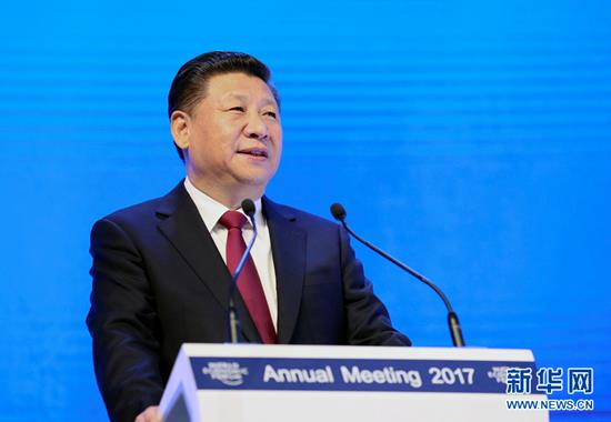 2017年1月17日,國家主席習近平在瑞士達沃斯國際會議中心出席世界經濟論壇2017年年會開幕式,并發表題為《共擔時代責任共促全球發展》的主旨演講。(圖片來源:新華社)