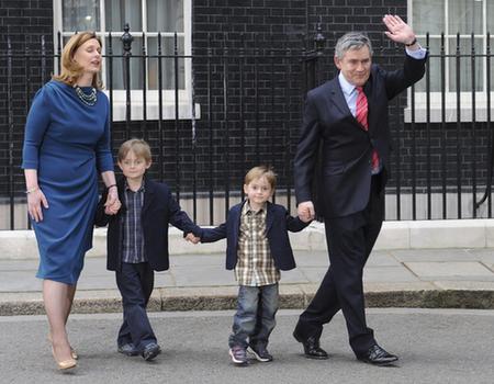 布朗的兩個兒子約翰和弗雷澤也首次與父母一同出現(xiàn)在媒體面前。布朗在宣布完自己的決定后跟家人一起乘車前往白金漢宮向女王正式遞交辭呈。有目擊者稱布朗一家已經(jīng)開始收在拾行李,有貨車出現(xiàn)首相府的后街。