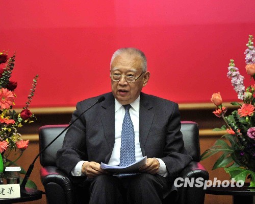 一月六日,中國和平統一促進會香港總會在香港舉行“香港各界學習胡錦濤主席重要講話座談會”。 全國政協副主席董建華出席并致辭。中新社發譚達明 攝