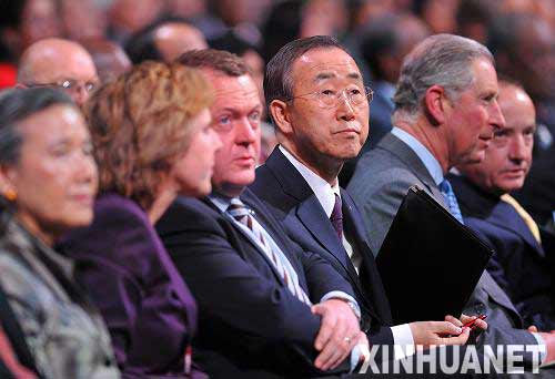 12月15日,在丹麥?zhǔn)锥几绫竟?lián)合國(guó)秘書(shū)長(zhǎng)潘基文(右三)、丹麥?zhǔn)紫嗬鼓律ㄓ宜模⒂?guó)王儲(chǔ)查爾斯王子(右二)等出席聯(lián)合國(guó)氣候變化大會(huì)高層會(huì)議開(kāi)幕式。當(dāng)天,氣候變化大會(huì)開(kāi)始進(jìn)入高層會(huì)議階段。新華社記者武巍攝