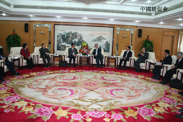新華網北京4月15日電(記者 吳濟海)全國人大常委會副委員長、中國和平統一促進會副會長桑國衛15日在北京會見了以范允富為團長的美國南加州中國和平統一促進會聯盟訪問團一行。