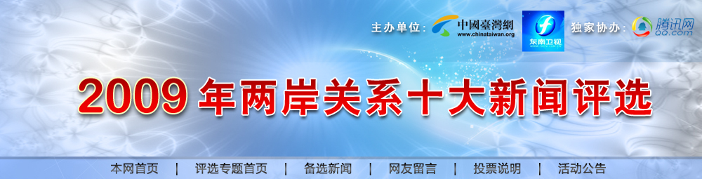 1、請您在備選項前的框內打勾,最多不得超過10項。請在頁面下方填寫個人詳細信息,供主辦單位抽取幸運網友之用,其中打*的選項為必填項目。 2、投票起止時間:2009年12月31日——2010年1月7日。投票將于1月7日下午5時截止,1月8日公布評選結果。 3、如果網友投票時選擇結果最終評出的“十大新聞”一致,將有機會參加主辦方的抽獎活動。在評選結果揭曉的一周內,主辦方將在幸運網友內抽出一、二、三等獎共10名,以及幸運獎20名,并贈送獎品。屆時請網友登陸中國臺灣網查詢獲獎情況。