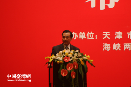 第二屆津臺投資合作洽談會7月29日在天津隆重開幕,中共中央政治局委員、天津市委書記張高麗,中共中央臺辦、國務院臺辦主任王毅,中國國民黨榮譽主席連戰(zhàn)、副主席林豐正等出席開幕酒會。圖為中共中央臺辦、國務院臺辦主任王毅在開幕酒會上致辭。(中國臺灣網(wǎng) 張蕾 攝)