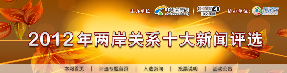 中國臺灣網自2005年推出“兩岸關系十大新聞評選”,至今已經連續舉辦了7屆。每一年我們都同專家學者與廣大關注兩岸關系發展的網友一道,評選出當年最具影響力的兩岸關系十大新聞事件。同時,也以此為線索回顧...