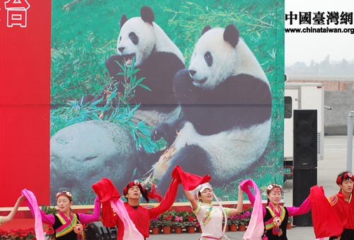 12月23日,成都雙流機(jī)場為贈臺大熊貓和珙桐樹苗舉行歡送儀式,這是歡送儀式開始前現(xiàn)場表演少數(shù)民族歌舞。中國臺灣網(wǎng) 田云鵬 攝
