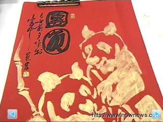用中國最經典的墨寶畫出兩只超級可愛的大熊貓,除了慶祝新年的到來,更希望團團圓圓的好兆頭,能在這波不景氣當中,祈求臺灣經濟能夠圓圓滿滿。(章潘)