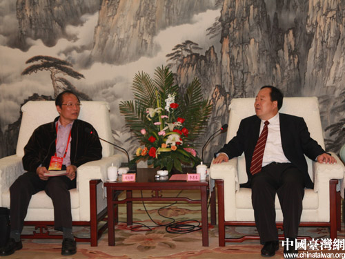 平頂山市長李恩東(右)會見兩岸記者聯(lián)合采訪團(中國臺灣網(wǎng) 宿靜 攝)
